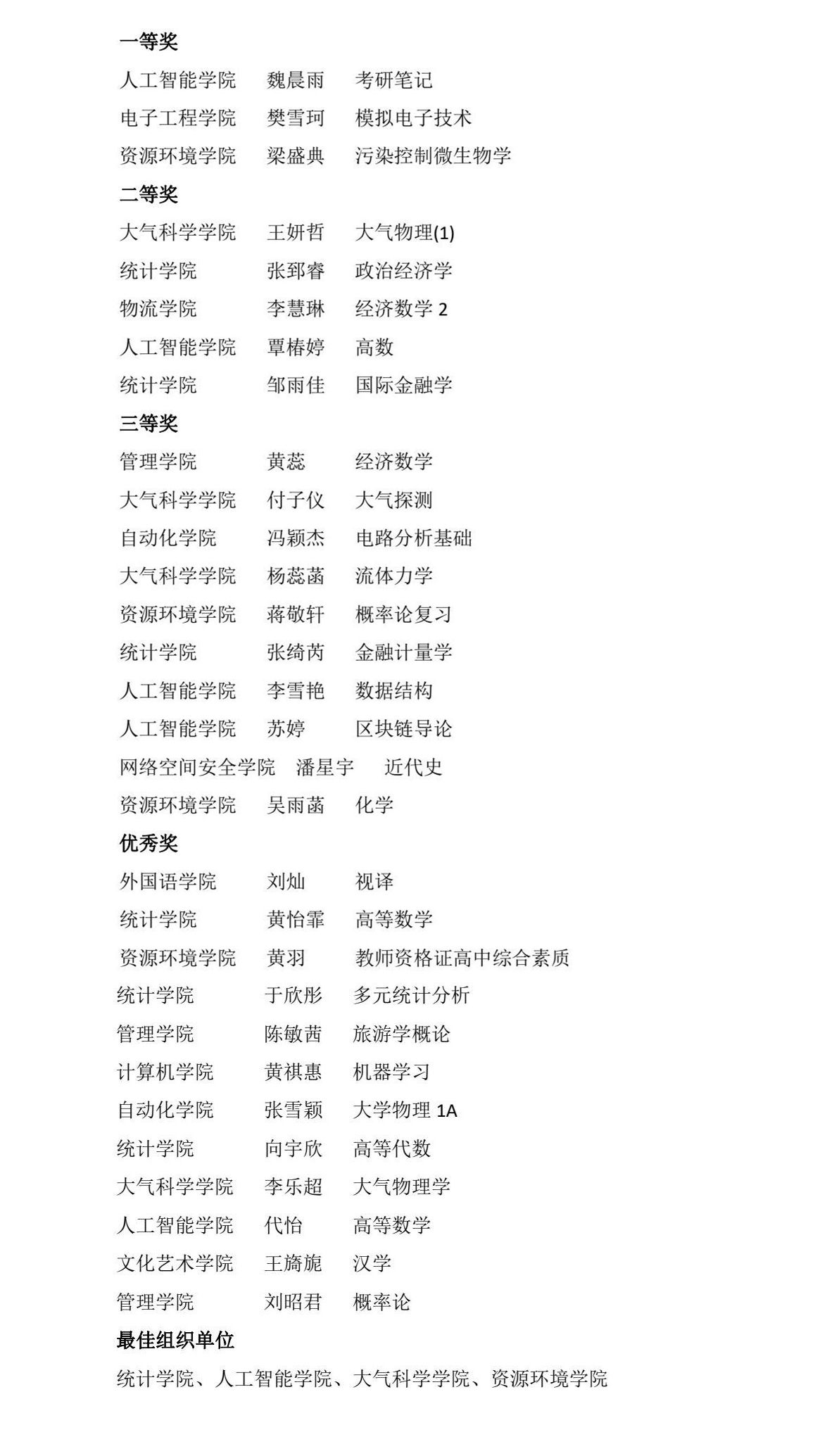云博体育2024-2025学年第2学期学风建设月“第二课堂”精品活动之最美笔记大赛获奖名单