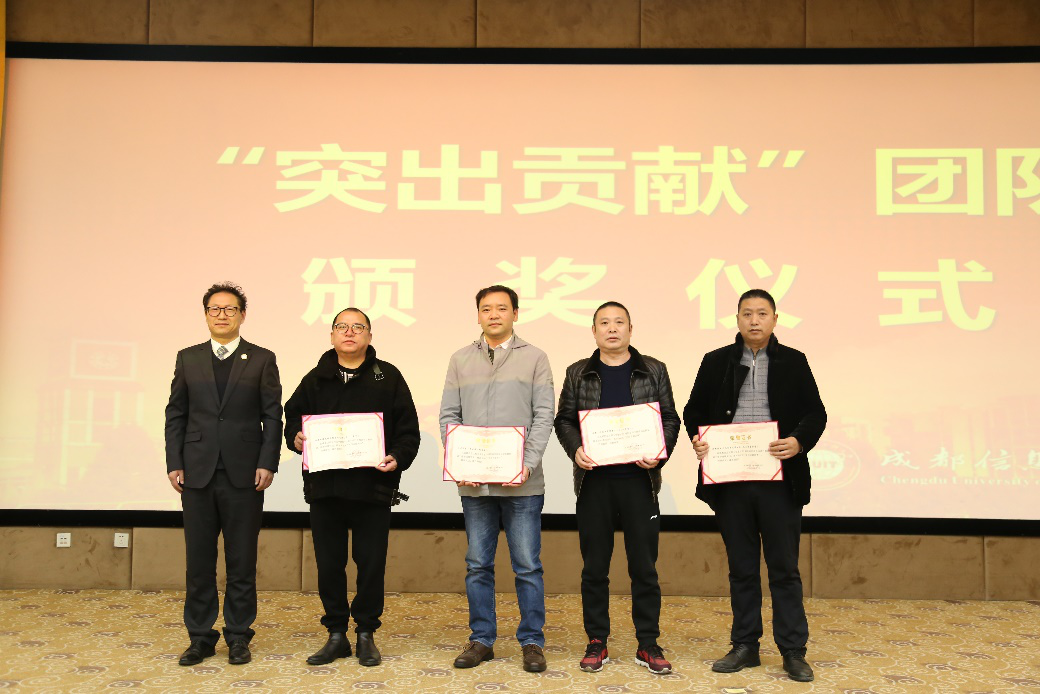 在颁奖仪式上,学校党委常委、分管副校长及后勤基建处全体班子成员分别为获得“突出贡献奖”的4个团队和73名优秀员工进行了颁奖。