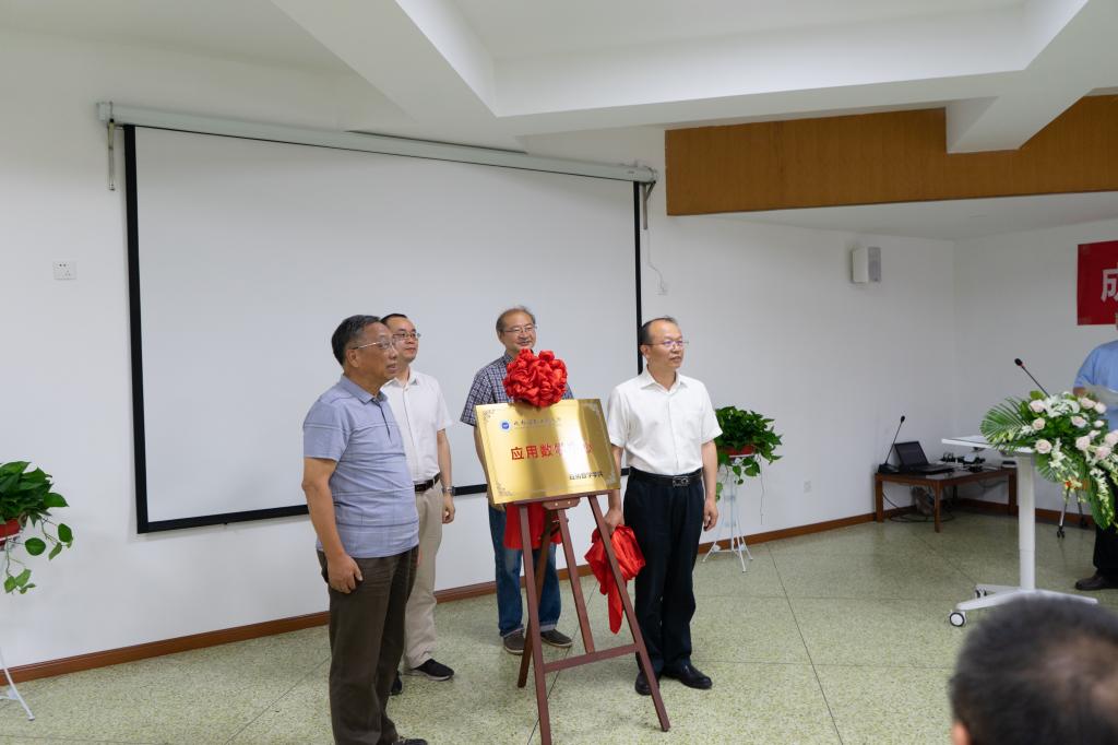 在与会人员共同见证下,何建新、李继彬共同为云博体育应用数学中心揭牌。