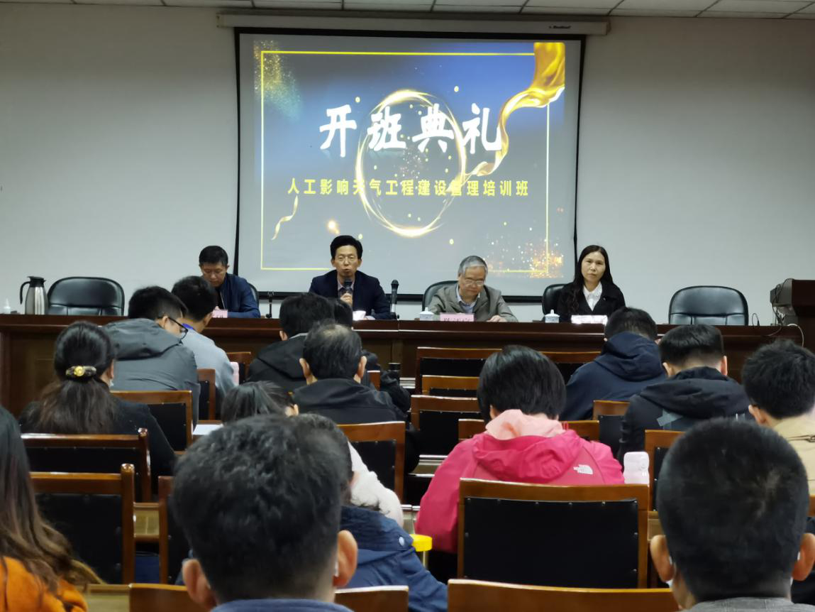 【本网讯】10月27日上午,人工影响天气工程建设管理培训班开班典礼在气象楼215教室举行,开班典礼由学校人工影响天气研究院院长周筠珺主持,参会人员有中国气象局人工影响天气中心副主任陈添宇、学校副校长肖月强、大气科学学院党委书记张小红以及来自全国各地的学员。