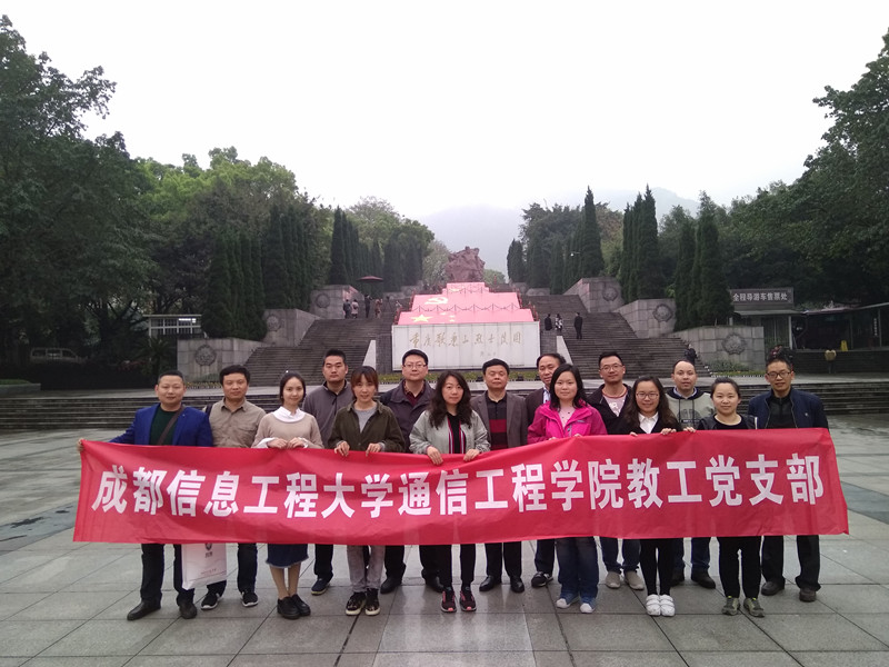 【本网讯】为扎实推进“两学一做”学习教育常态化制度化,进一步坚定理想信念,提高党性觉悟,使党员们始终保持昂扬向上的精神状态,清明节前夕,通信工程学院教工党支部组织教师党员赴重庆开展“缅怀先烈、坚定信仰、永葆奋斗激情”主题党员教育活动。