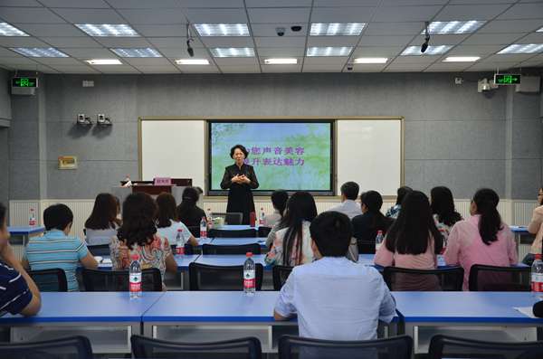 【本网讯】6月14日下午,我校教师教学发展与评估中心在航空港校区1402录播教室组织了教学工作坊教学法系列第三期——“为您声音美容,提升表达魅力”的主题活动,四川音乐学院民族声乐系特聘教授赵凤英再次担任主讲人,全校共20余位教师参加了本次活动。