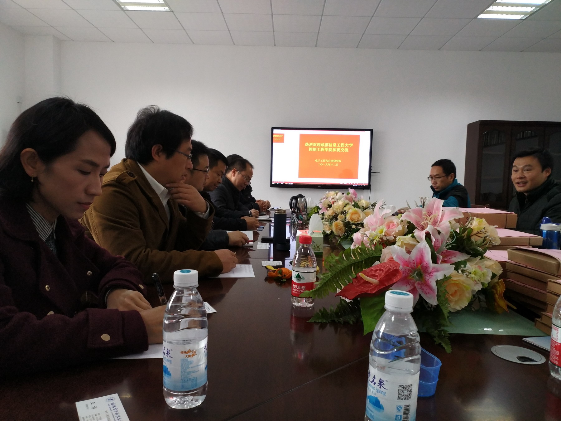 桂林电子科技大学电子工程与自动化学院王祥副书记、马峻副院长,各教研室和实验室主任与我院代表进行了座谈。马峻介绍学院基本情况和各专业负责教师。随后,蒋涛介绍随访教师代表,并介绍了云博体育以及控制工程学院的基本情况、学科专业和本科专业建设等,并对桂电电子工程与自动化学院的热情接待表示了感谢。