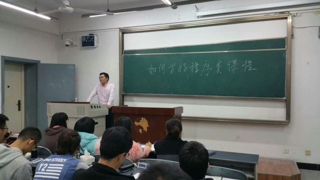 【本网讯】为更好地帮助机械电子工程专业16级新生学好C语言这门重要课程,机械电子工程专业教研室决定于11月17日晚上7:30在4404为同学们开展"如何学好程序类课程"的主题讲座。控制工程学院副院长严寒冰出席了此次讲座,并且邀请到教研室专业老师秦光旭担任讲座主讲人,16级机械电子工程专业全体新生均到场聆听讲座。