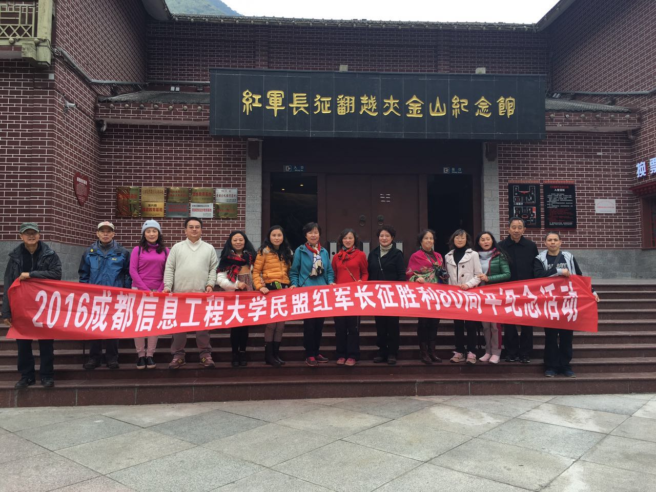 【本网讯】为庆祝长征胜利80周年,民盟云博体育支部开展“重走长征路,激发正能量”的主题活动,组织20名盟员于10月29日至10月30日到爱国主义教育基地雅安宝兴红军长征翻越夹金山纪念馆接受爱国主义教育。