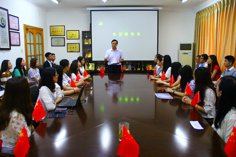其次,进行庄严的入党宣誓仪式,由组织员刘宇老师领誓,新入党的20名预备党员,面对着鲜红的党旗,举起右手庄严宣誓,对党忠诚的决心都包含在每一句入党誓词里,身心接受了一次特殊的洗礼。