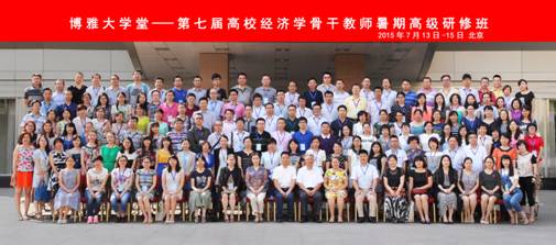 【本网讯】7月13日至15日,由中国经济学年会秘书处与北京大学出版社在京成功举办了“博雅大学堂——第七届高校经济学骨干教师暑期高级研修班”。此次研修班是自创立以来规模最大的一届,我校商学院那军、鲍文两位老师及来自全国近100所高校的160多名经济、金融、国贸等学科的教师参会,张维迎教授、李奇教授、徐滇庆教授和樊明太教授以他们深厚的学术修养和丰富的研究经验为学员们带来了一场丰盛的经济学盛宴。