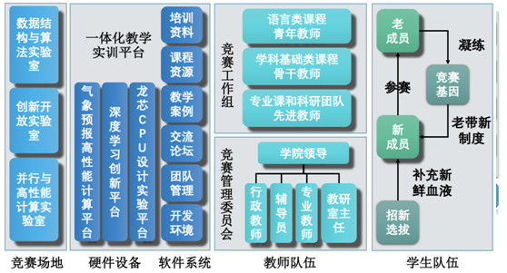 一是学院把学生学科竞赛作为智育的重要抓手,实施“1+3+N”竞赛机制,基于学院一体化教学实训平台,规划程序设计、作品开发和创新进阶三大竞赛类别,致力于推动跨学科、高影响力的“一院一赛”项目,树立学院竞赛品牌,覆盖学校N个专业学生参与。学院依托数据结构与算法实验室、创新开放实验室和并行与高性能计算实验室,分别为不同层次学科竞赛提供培训场地和基础环境。同时,选拔优秀教师组建稳定的竞赛工作小组,负责竞赛组织和指导等工作。近两年,学生参加竞赛的比例逐年增高,获奖数量和档次均有显著提高,在中国国际大学生创新大赛中获国家级奖励1项,省级奖励7项;在“挑战杯”竞赛中获国家级奖励1项,省级奖励5项;在中国高校计算机大赛-团体程序设计天梯赛、中国大学生计算机设计大赛、蓝桥杯全国软件和信息技术专业人才大赛(软件类)、睿抗机器人开发者大赛编程设计CAIP赛道等学科竞赛中,累计获得国家级奖励505人次,省级奖励781人次。二是学院注重学生创新意识培养,打造“触摸科创·点亮视界”品牌活动,通过带领同学们走出校园,走进科技博览会、行业企业、创新工厂等方式近距离感受前沿科技与职业体验,激发同学们对专业学习的兴趣以及对未来职业的追求。三是深入推进学风引领计划,聚焦专业学习、考研科研、出国留学等专题,开展“大手拉小手”学习帮扶工作室、研究生学术沙龙、海外教师留学经验分享会、“榜样说”国奖面对面等特色活动,引导学生乐学、善学、勤学,在院内营造崇尚学术、追求卓越的浓厚氛围。