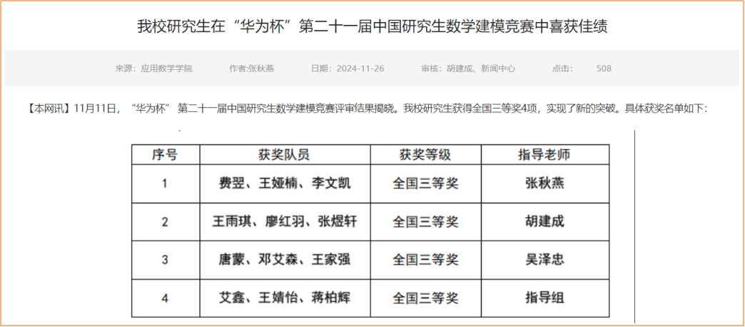 研究生在数学建模竞赛喜获佳绩