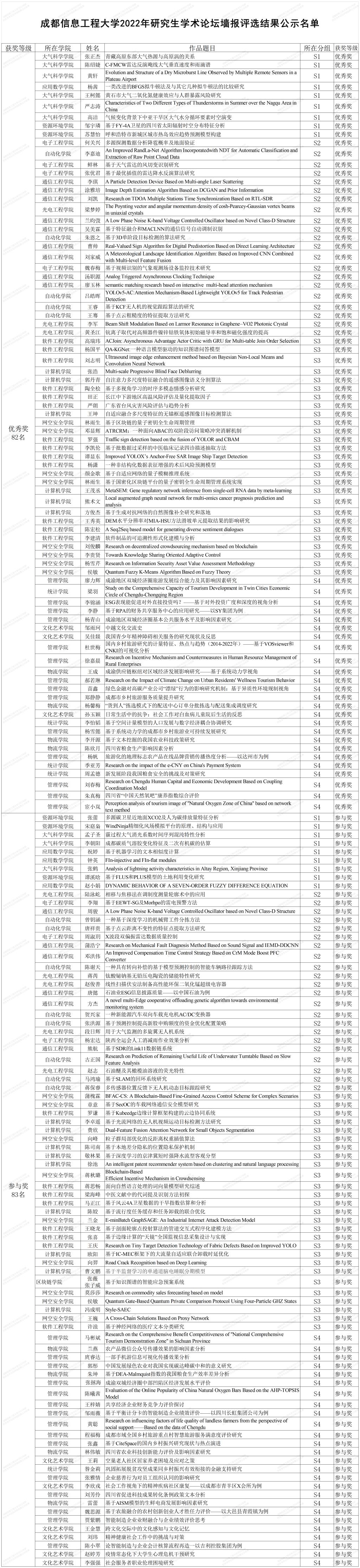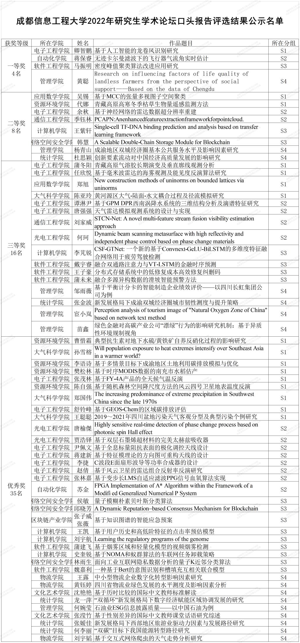 【本网讯】2022年11月10日“云博体育2022年第五届研究生学术论坛”成功举办。本次论坛经组委会和各学院积极组织前期共收到研究生参赛作品230份,其中包含口头交流报告64个,墙报166件。根据《关于举办云博体育2022年研究生学术论坛的通知》安排,本次论坛组织分会场评委对现场63个口头交流报告和165件墙报进行评选,现将评选结果予以公示: