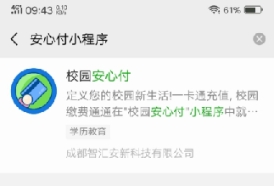 第一步:打开微信小程序,搜索小程序“校园安心付”