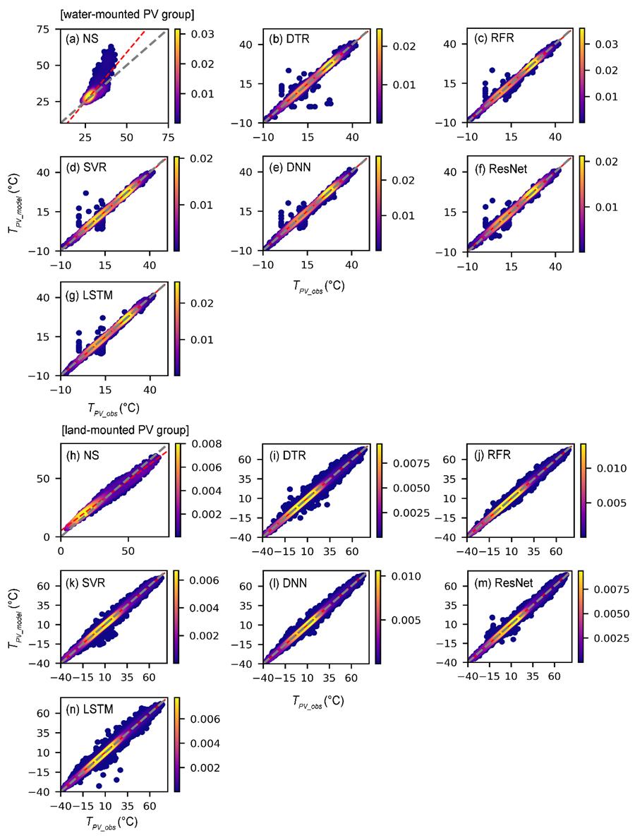 针对上述科学问题,近日云博体育大气科学学院李培都博士在中科院1区Top期刊《Renewable Energy》(IF:9.0)上发表了一篇题为“Advancing photovoltaic panel temperature forecasting: a comparative study of numerical simulation and machine learning in two types of PV power plant”的研究论文。该研究对湖、陆光伏电站的光伏面板温度预测进行了比较,探讨了数值模拟与机器学习方法在不同条件下的性能表现。基于数值模拟和6种机器学习算法,研究发现,机器学习在光伏面板温度的预测性能优于传统的数值模拟。其原因是数值模拟是基于简化的物理模型,可能不能完全反映所研究系统的复杂性。机器学习更多是基于数据驱动,可更好地解释数据中的非线性和复杂模式。然而,数值模拟仍然具备重要的物理意义,能够为理解潜在的物理过程提供深刻洞见。研究建议,未来可通过混合方法,结合数值模拟与机器学习方法,以实现更加精确的预测,特别是在缺乏训练数据的情况下,数值模拟的重要性不容忽视。这一研究不仅为光伏电站的运维优化提供了科学依据,也为进一步开发高效的预测模型奠定了理论基础,具有重要的应用价值。