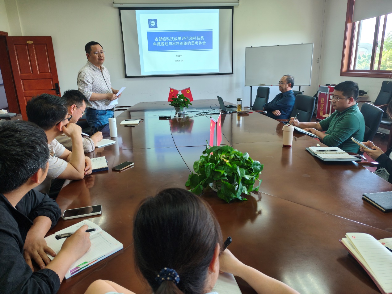 李国平教授分别从适合申报的奖种(可报哪些奖?)、申报评审流程(怎样报奖?如何评奖?)、提名材料内容(如何组织申报材料?)和需要注意的问题(报奖有哪些门道?)四个方面深入浅出地介绍了省部级科技成果评价和科技奖申报规划与材料组织的一些亲身经验和体会,其中细致分享了国家科技奖的最新风向标、省部级政府科技奖和大气科学类社会力量设立的科技奖和中国气象局气象科技成果(等级)评价这些奖种的具体申报经验,最后总结了报奖的意义。会后,在场教师与李国平教授开展了深入的讨论交流,这为后期在场教师积极申报各种奖项和顺利完成科研成果总结及转化奠定了扎实的基础。