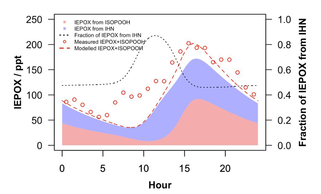 图3. 利用修正后的机理模拟北京外场观测中IEPOX的生成