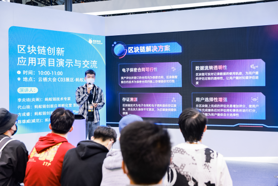 【本网讯】11月3日上午,为期三天的2022年蚂蚁集团云栖大会在杭州市云栖小镇开幕。我校区块链产业学院区块链工程专业学生团队代表代山琅受蚂蚁链邀请参加峰会,参与蚂蚁区块链创新应用项目路演,并在蚂蚁链智能合约编程挑战赛中以最短时间完成赛题,创造最新纪录。