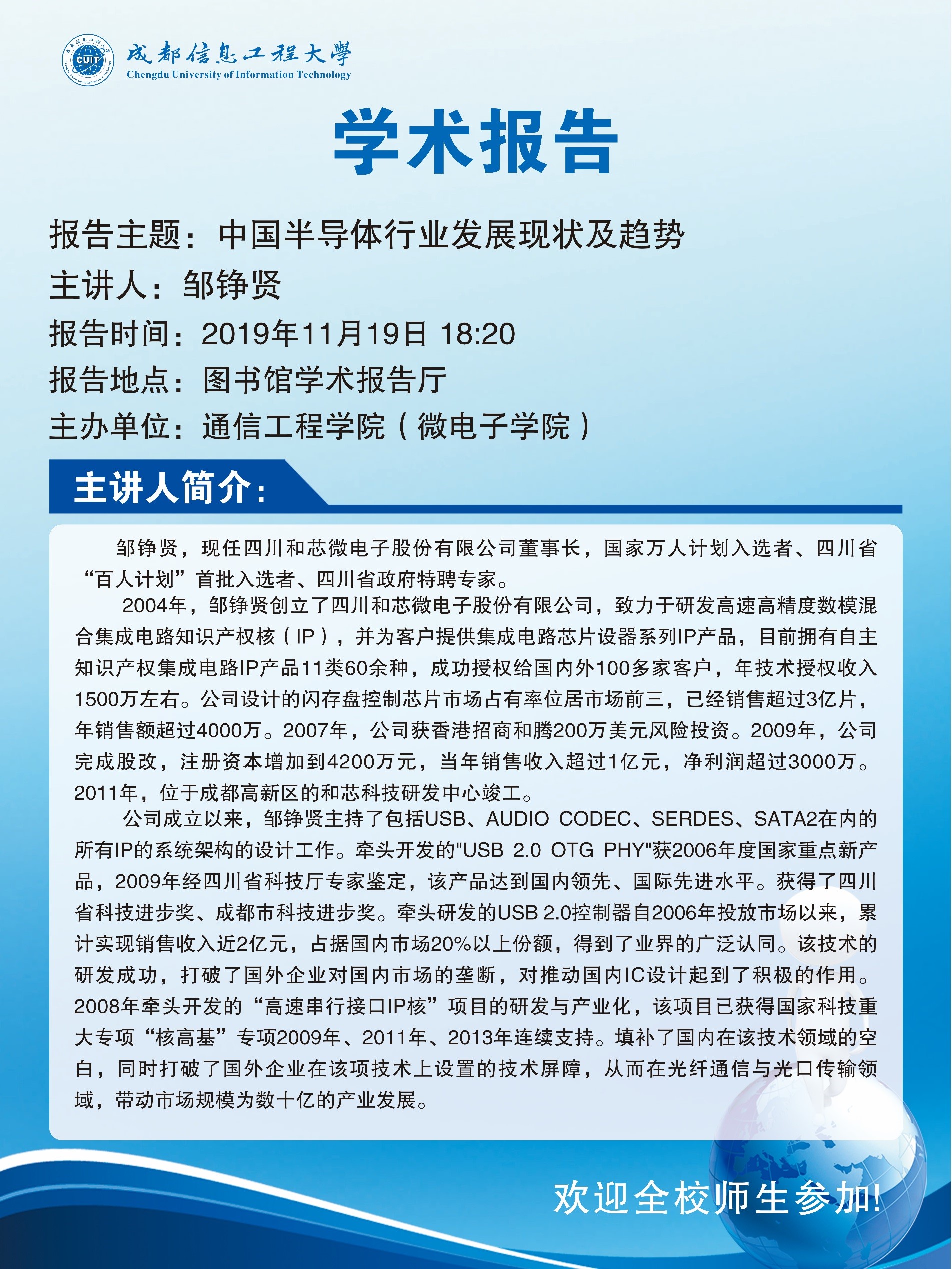 来源:通信工程学院 作者:曹怡日期:2019-11-18 审核:新闻中心 点击: