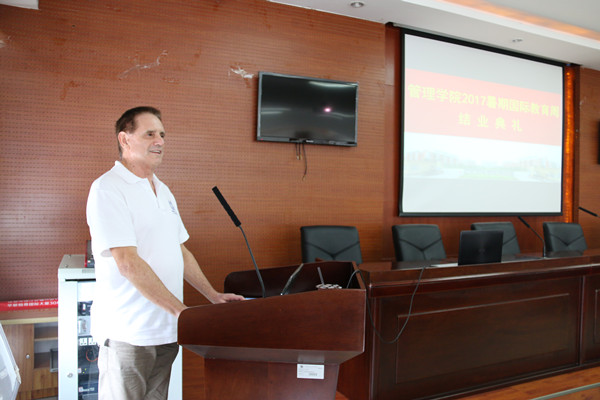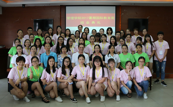 【本网讯】7月17日下午,管理学院在龙泉校区二会议室举行了2017年暑期国际教育周活动闭幕仪式。管理学院院长黄萍,副院长李贵卿、孙艳玲,党政办公室、教学办公室、学工办公室主任,教师代表以及全体学员参加了闭幕仪式。