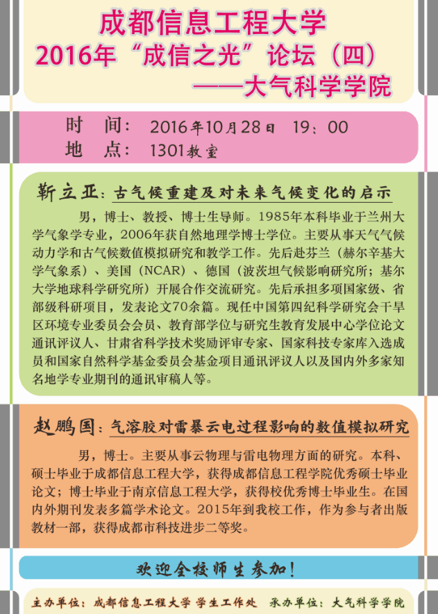 【学术预告】2016年“成信之光”论坛(四)—大气科学学院分论坛