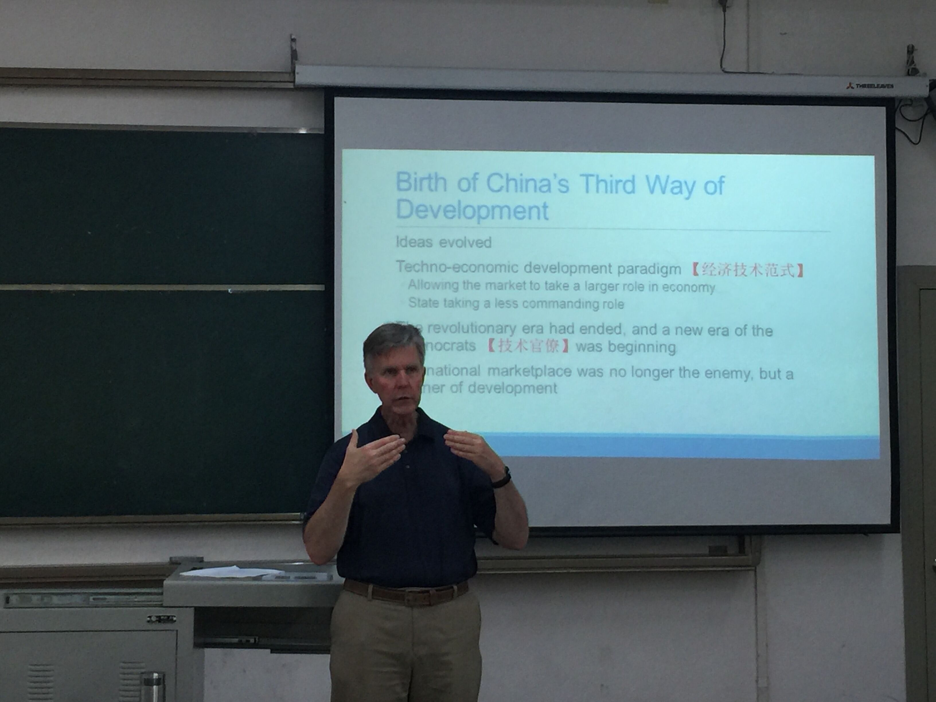 Reardon副教授通过国际比较特别是对“亚洲四小龙”发展的分析,阐明了外向型经济发展相比内向型经济发展的特点优势,探讨了中国经济发展的历史脉络;对我国建国后到1987年以前的经济发展和模式进行了重点介绍,对两条不同发展道路(独立自主发展和进口替代发展)的发展观进行了历史回顾和比较梳理;对中国为什么走上外向型经济发展这个第三条道路进行了分析总结,并论述了如何在未来经济发展中将“中国发展的第三条道路”走通。