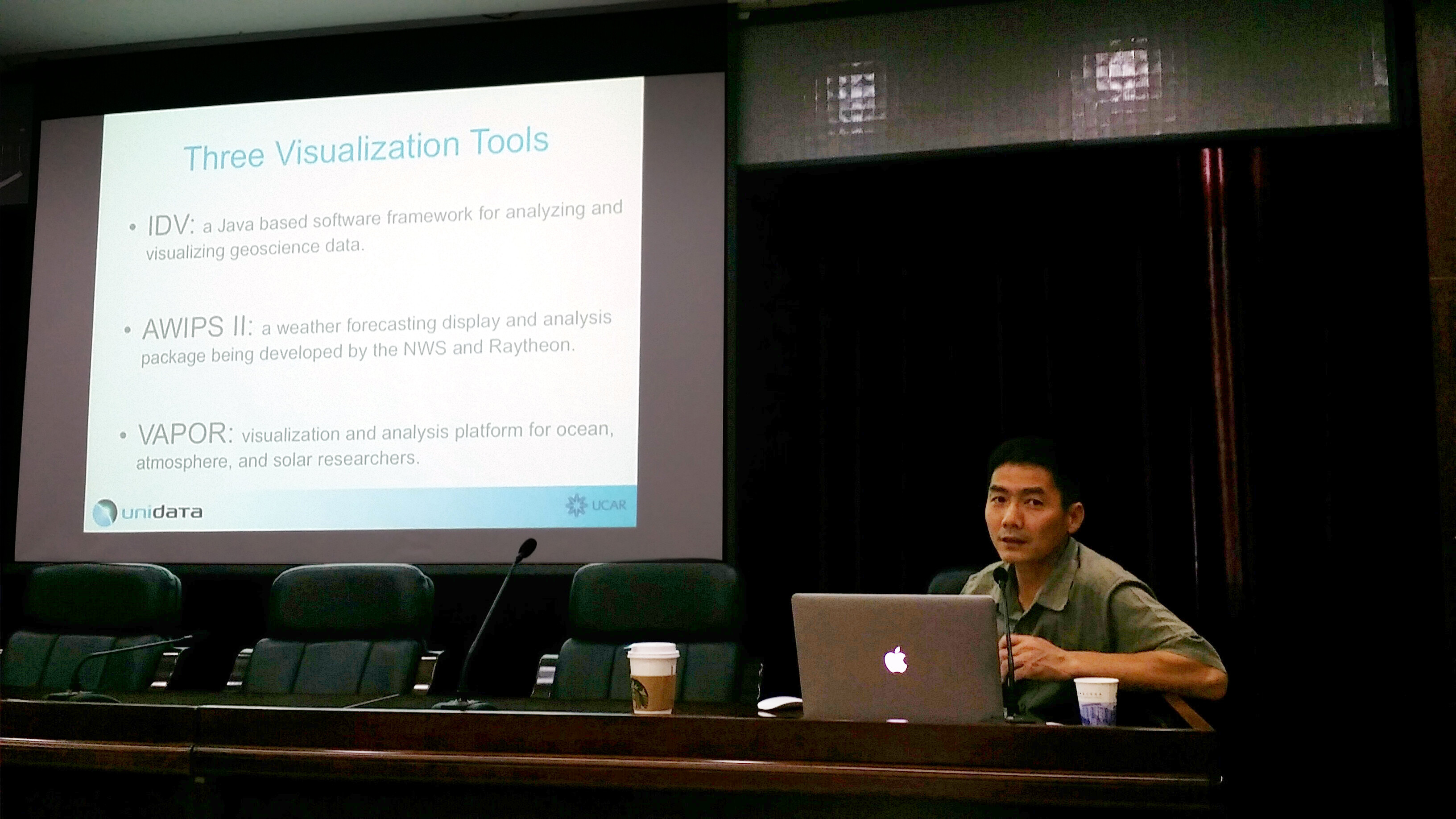 【本网讯】527日,美国大气研究大学联合会(University Corporation forAtmospheric ResearchUCAR)下属联合数据中心(Unidata)“集成数据显示系统”(IDV)项目负责人Yuan Ho博士应邀到校作了题为《Designing an integrated, interactivea n d collaborative visualization a nd analysis tool for BIG data》的学术讲座,软件工程相关学科的教师与研究生、云南省气象局公共气象服务中心相关技术人员听取了报告。讲座由软件工程学院院长舒红平教授主持。