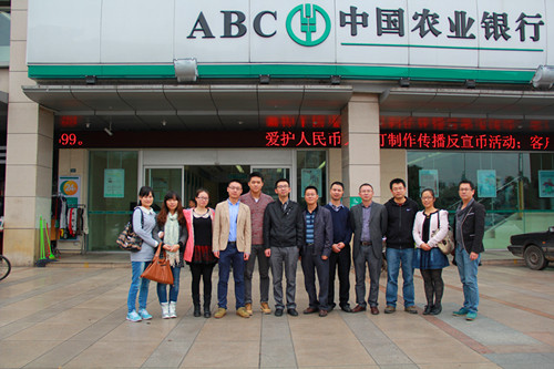 调研中,研究生同学们首先对乐山农业银行城区支行和个贷中心进行了实地考察,熟悉银行工作环境和个贷业务流程,认真学习了银行业的相关服务知识。