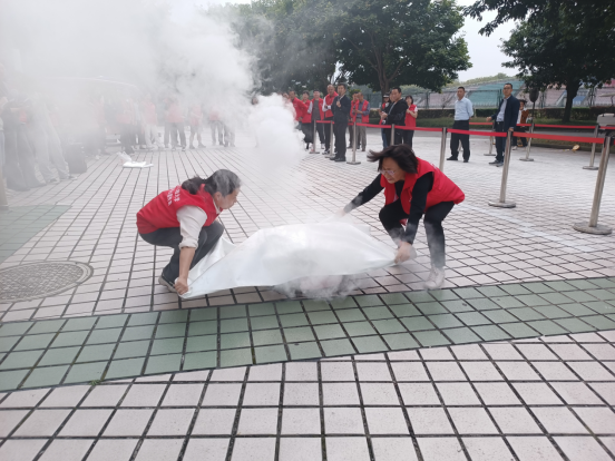 本次消防技能大比拼活动共设置了帐篷逃生、水带保龄球、灭火毯扑灭烟幕弹、火盆灭火四个项目。活动过程中,参赛教职工积极认真、有条不紊地完成了各个项目的比赛任务。
