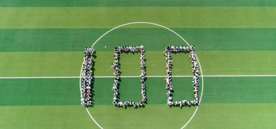 活动间隙,学校青马工程第十六期大骨班学员集结在九龙柱广场,用歌声礼赞党、礼赞祖国、礼赞青春梦想;成信学子在操场上摆出100”数字造型,献礼中国共产党成立100周年。