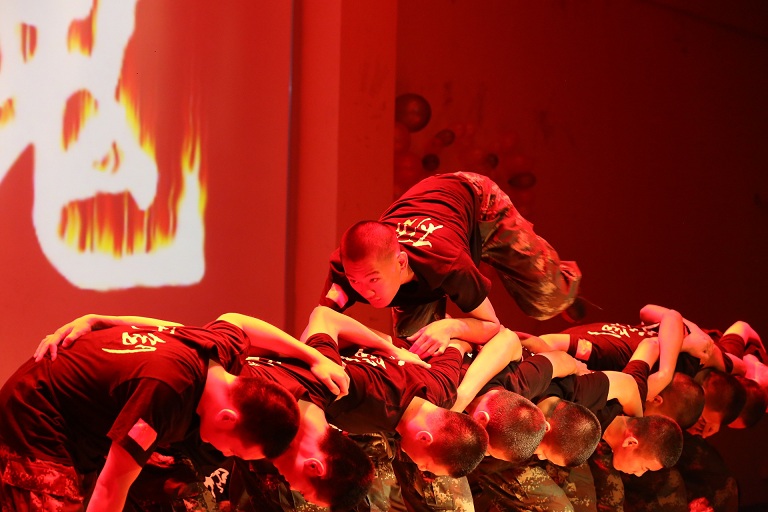 第三篇章——成长:视频《成长》用讲述的方式娓娓述说着同学们所经历的成长,有欢笑,也有泪水,小品《新兵入连》通过诙谐幽默的方式讲述着军人们在部队里的成长历程,由国防生同学带来的动作舞蹈《砺剑军魂》彰显了他们历经磨砺而永不言弃的毅力和勇气。