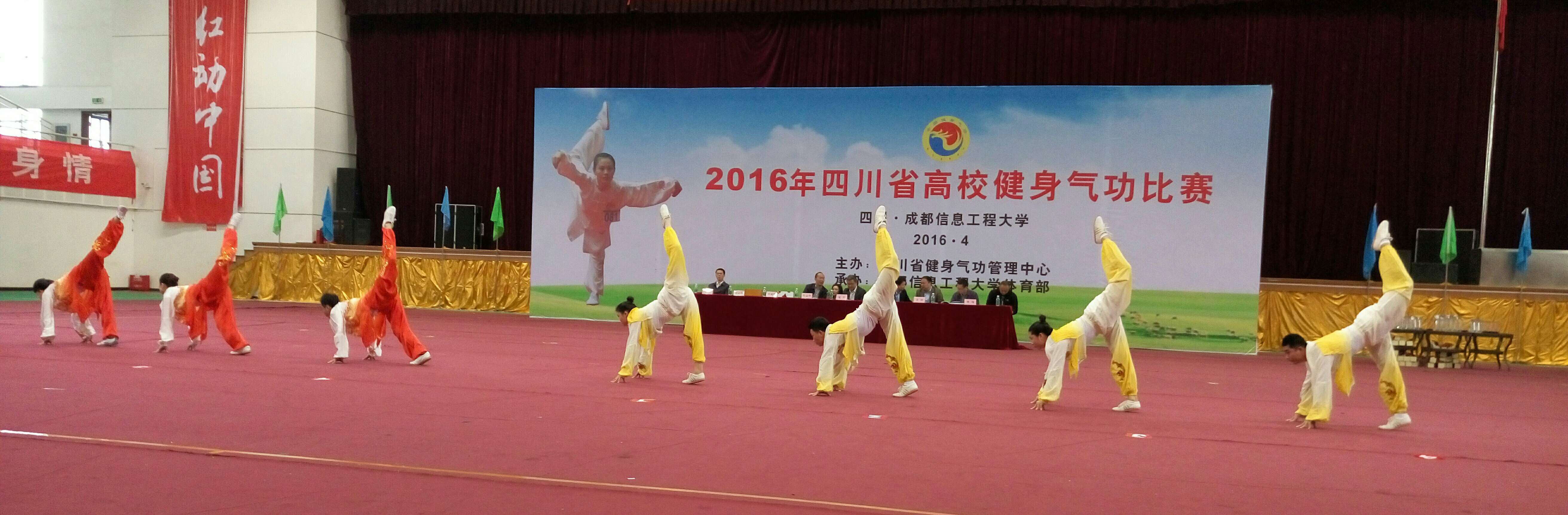 【本网讯】由四川省健身气功管理中心主办,云博体育体育部承办的2016年四川省高校健身气功比赛,于4月23日在我校体育馆举行。参加本次比赛的有成都中医药大学、成都大学、内江师范学院、西南科技大学、成都体院学院、成都理工大学、四川师范大学、四川理工学院、西华师范大学、乐山师范学院、内江职业技术学院、云博体育等12所高校的25支队伍128名运动员教练员参加比赛。比赛项目为国家体育总局审定推广的健身气功“易筋经、五禽戏、六字诀、八段锦”四种普及和竞赛功法的集体及个人比赛。进行了二个单元136项次的比赛。