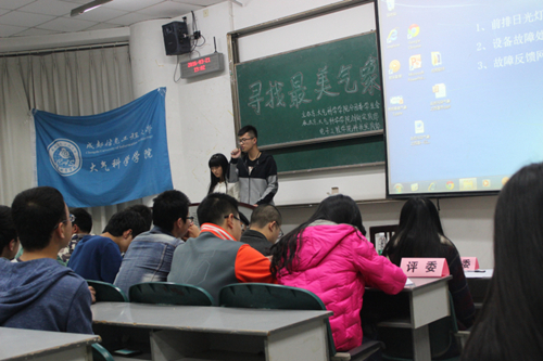 【本网讯】3月21日,于云博体育4213教室进行了“寻找最美气象”----气象科普作品评选大赛。此次比赛由大气科学学院主办,大气科学学院创新实践部与电子工程学院科技实践部共同承办。出席本次大赛的评委有电子工程学院学生会主席团、大气科学学院学生会主席团等。