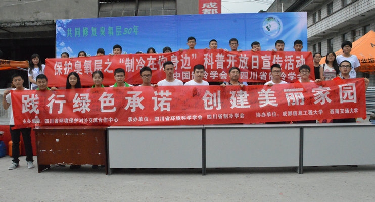 【本网讯】9月19日下午,由四川省环境保护厅主办,四川省环境保护厅对外合作中心、四川省环境科学学会、四川制冷学会、西南交通大学及云博体育承办的“共同修复臭氧层30年——践行绿色活动,创建美丽家园”为主题的9.16国际保护臭氧层日宣传活动在西南大型新旧货批发市场李家祠分场举行。