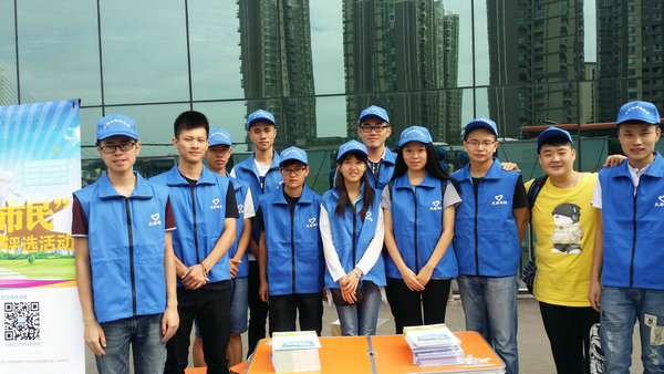 在华阳街道办的帮助下,我院志愿者分别在南湖梦幻岛、摩尔新世界商城、华阳汽车客运站摆点宣传华阳首届“优秀市民”评选活动。志愿者们向过往的市民发放宣传单,并讲解关于活动的一些相关事项,告诉市民可以关注华阳官方微信和微博,“优秀市民”评选活动的一些相关通知会在微信和微博上公布,对于一些市民提出的问题,志愿者们也耐心热情的回答。在活动中,有需要帮助的市民,志愿者们也积极热情提供帮助。