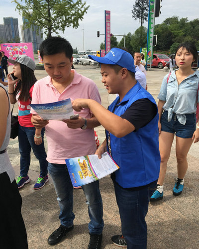 志愿者给市民宣传活动