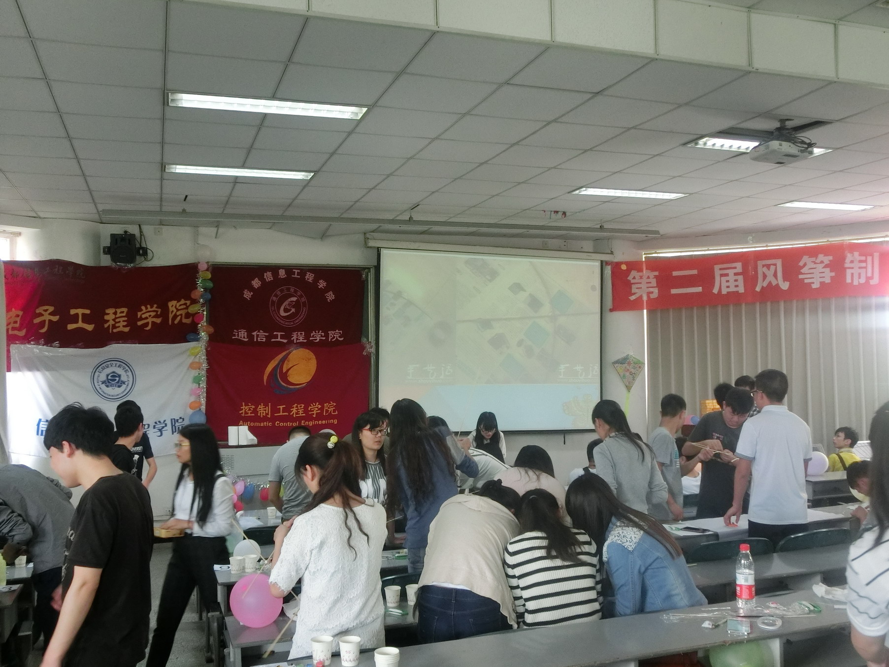【本网讯】由控制工程学院、信息安全工程学院、通信工程学院、电子工程学院联合主办的第二届风筝制作大赛于4月25日下午在4213教室成功举办。