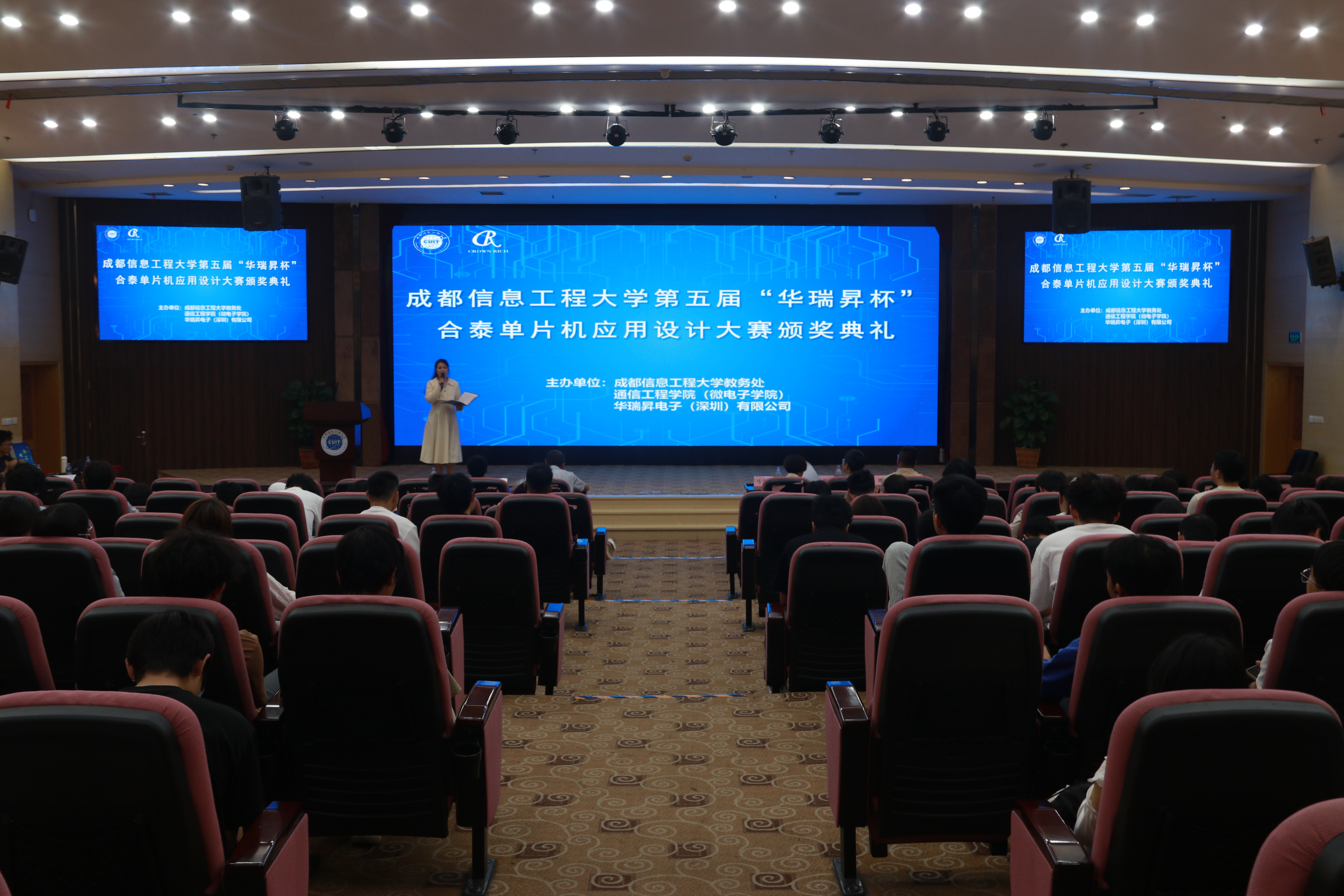 4月20日下午,竞赛颁奖典礼在学校航空港校区国际会议厅举行。通信工程学院(微电子学院)党委书记马文英、华瑞昇电子(深圳)有限公司成都分公司总经理徐兵、通信工程学院(微电子学院)教师钟剑丹、华瑞昇电子(深圳)有限公司成都分公司高级工程师梁友华、通信工程学院(微电子学院)大学生创新实验室主任谭毅、华瑞昇电子(深圳)有限公司成都分公司商务部主管侯利霞以及参赛选手和关注大赛的师生等参加了本次活动。