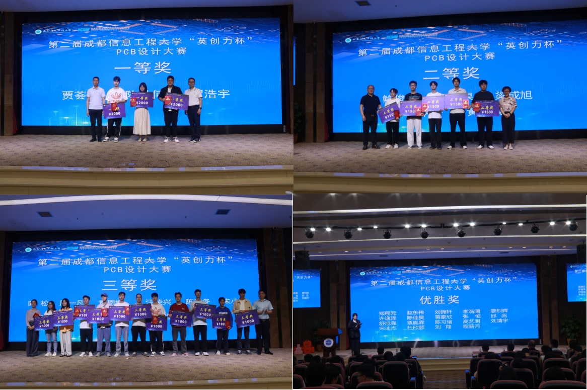 4月19日,大赛颁奖典礼在我校国际会议厅举行。教务处副处长李代伟、通信工程学院(微电子学院)党委书记马文英、英创力一站式事业部副总经理唐寅森、四川英创力电子科技股份有限公司研发中心总监苟阳、四川英创力电子科技股份有限公司人事总监许冬梅和通信工程学院(微电子学院)团委书记盛小芳以及参赛选手和部分关注大赛的师生等参加了颁奖典礼。
