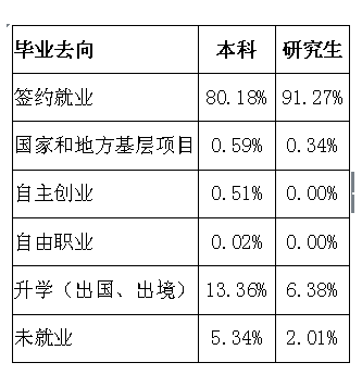 2018届毕业生共有4399人,男生2531人,占57.5%,女生1868人,占42.5%,学校整体就业率为94.89%,其中,本科生4101人,就业率为94.66%,研究生298人,就业率为97.99%。