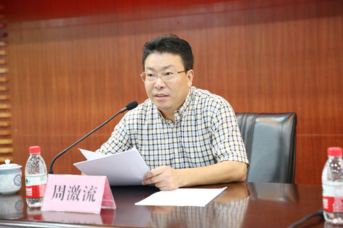 周激流介绍了学校的历史沿革和近期取得的成绩,希望与研究生新同学们和全校师生共同将我们学校建设成为开放的、特色鲜明的、高水平的信息工程大学。他结合自己多年培养博士、硕士研究生的经验,向研究生导师提出了要求:要求研究生导师尽快熟悉自己的学生,为研究生制定好个性化的培养方案;要求导师在生活中关心研究生,在学习中严格要求研究生。周激流希望研究生新生在研究生生涯中获得四种可以受益终身的能力:一是学会查找和阅读学习科研所需文献的能力;二是快速构建系统知识体系的能力;三是熟练掌握学习科研支撑工具的能力,比如外语阅读能力、编程能力等;四是运用所学的知识,分析问题、解决问题的能力。周激流以自己的求学生涯为例,鼓励研究生新同学们积极与导师沟通,善于利用学校的资源,用自己的智慧和汗水创造属于自己的美好未来。