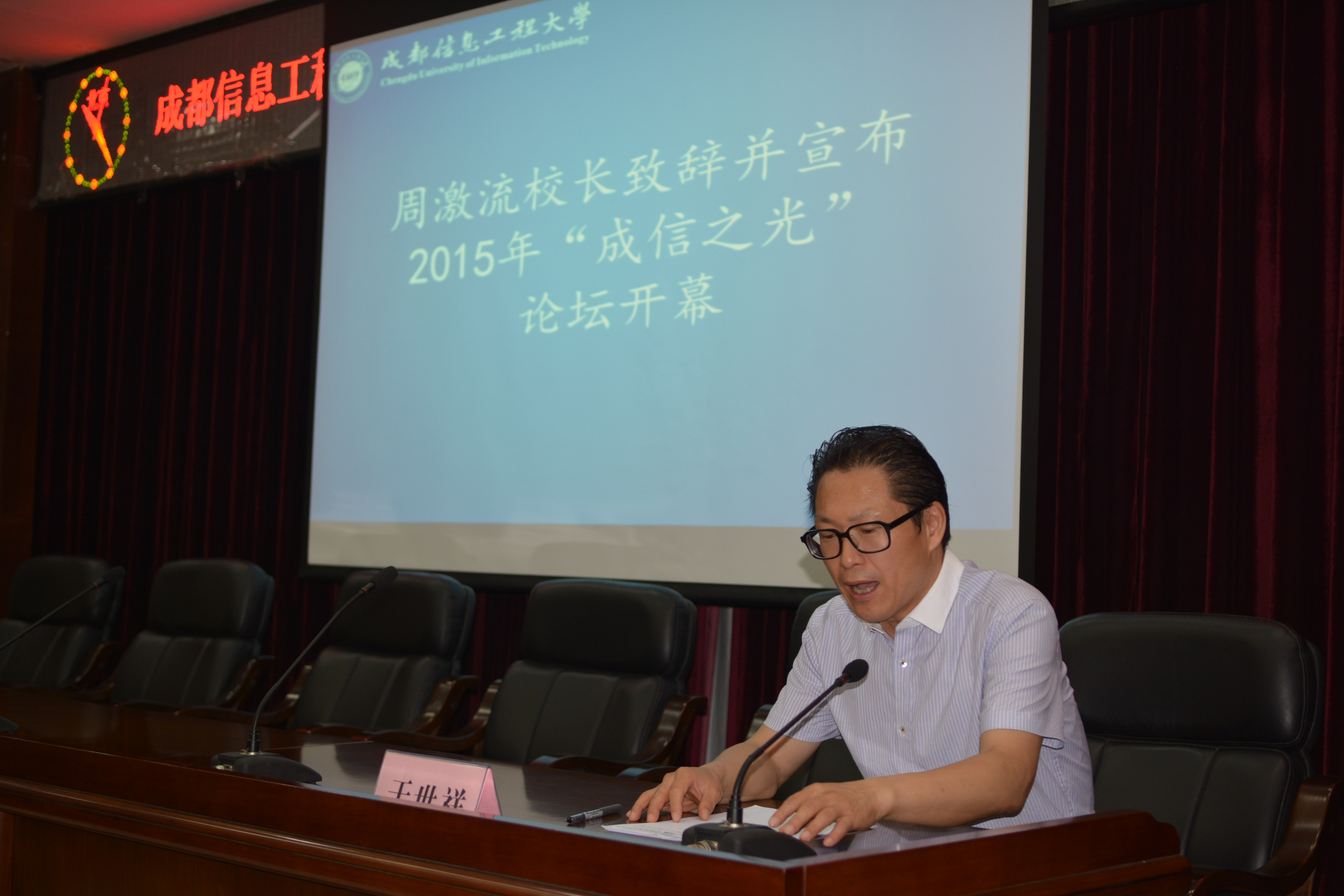 最后,学生工作处处长戴丽红宣布了2015年“成信之光”论坛的相关工作和安排。2015年论坛分设四个分论场:大气科学、资源环境专场;电子工程、光电、通信、控制专场;数学、计算机、信息安全工程、软件专场;管理、统计、商学、物流、文化艺术专场。