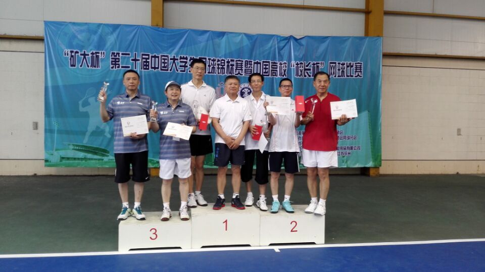 【本网讯】日前,从徐州中国矿业大学传来佳讯,在刚刚收拍的第二十届全国大学生网球锦标赛暨全国高校“校长杯”网球比赛上,我校党委书记赖廷谦与成都职业技术学院院长贺继明再度联手,登上了本届赛事校长丙组的最高领奖台。