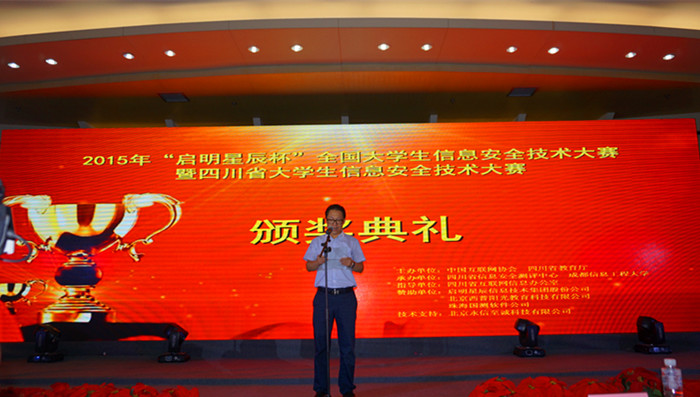 大赛组委会秘书长宣布了2015年全国大学生信息安全技术大赛和四川省大学生信息安全技术大赛的获奖名单,随后进行了全国大学生信息安全技术大赛的颁奖仪式。
