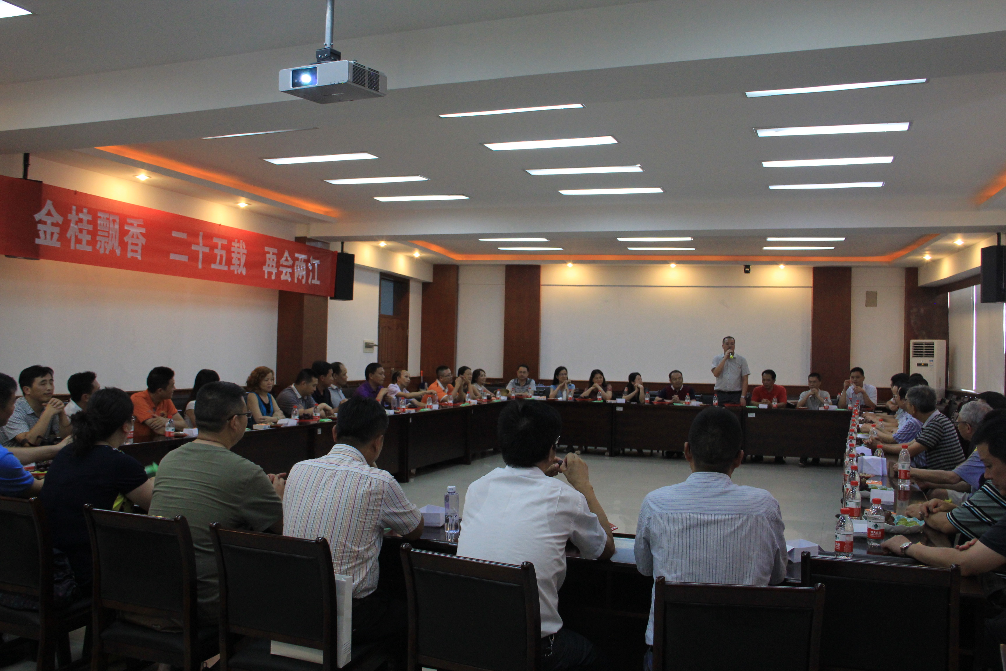 带着对母校的深深眷念和对老师、同学的深厚情谊,8月15日—16日,学校综合统计专业889班30余名校友相聚成都,重返母校,举行主题为“蓉城八月、金桂飘香,二十五载、再会两江”的毕业25周年同学会。该班班主任、学校副校长向武,省环境保护厅副厅长钟勤建,889班就读时期的学校部分老领导、任课教师以及学校相关职能部门、学院负责人参加了活动。