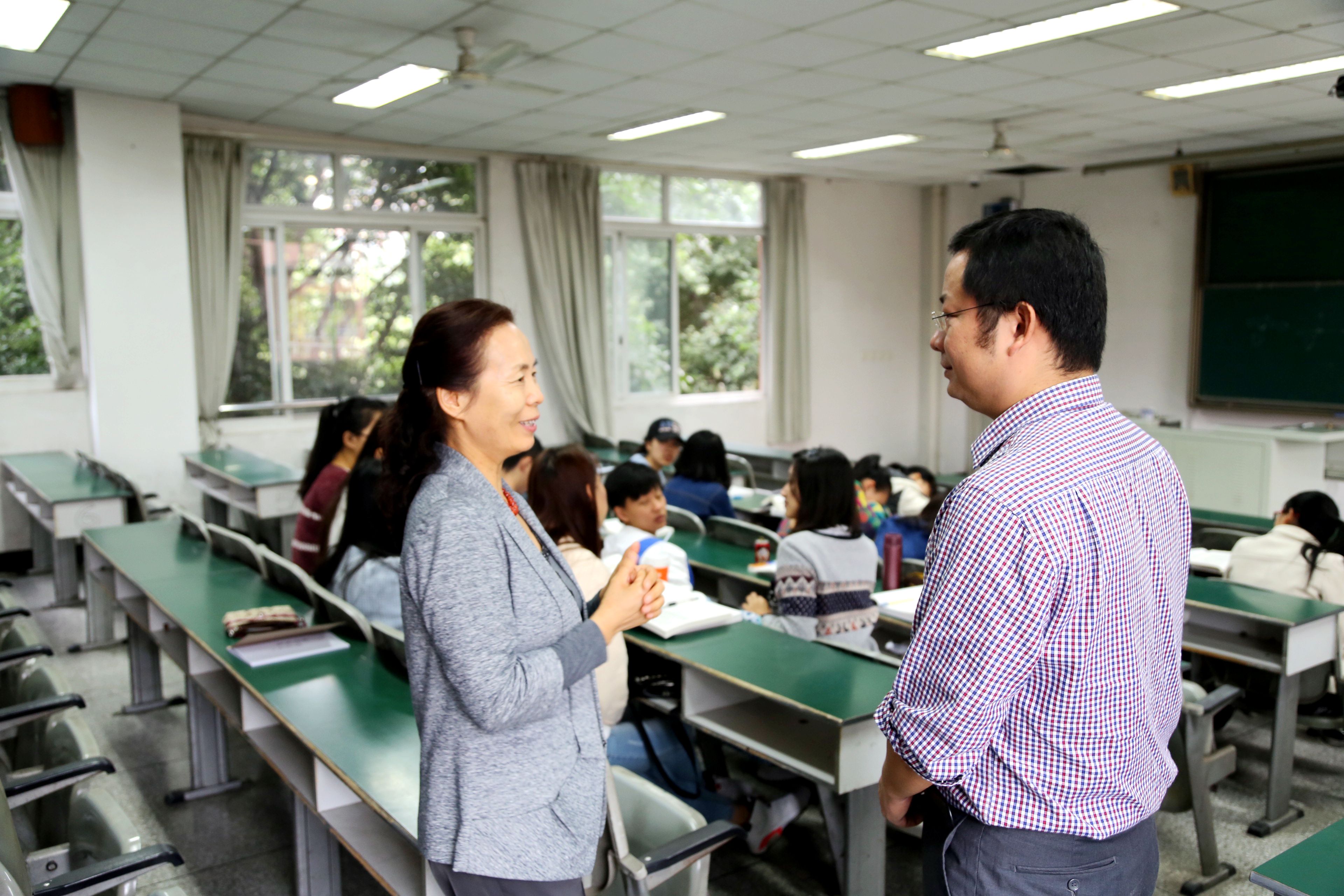 课堂上,敬枫蓉全神贯注聆听课程讲解,并认真做听课笔记,对课堂教学方式、教学纪律、教学效果等进行深入了解。课后,敬枫蓉与华维进行了沟通和交流,她从教学设计、教学过程、教学效果等多个环节对听课情况进行了分析点评,充分肯定了其良好的教学能力和教学素养,针对性地提出了一些在教学方式上具体而中肯的建议,并仔细询问了其教学、科研等工作的开展情况。