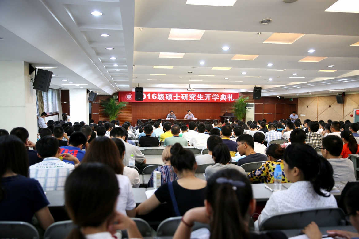 【本网讯】9月9日下午,学校在学术报告厅隆重举行了2016级硕士研究生开学典礼。学校校长、校学位评定委员会主席周激流、副校长于世祥,各研究生培养和教学单位的院长、党总支书记,以及相关职能部门负责人出席了开学典礼,全体2016级硕士研究生新生、研究生导师代表、高年级研究生代表参加了典礼。典礼由于世祥主持。