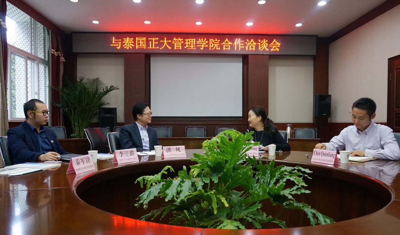 段黔冰对洪风一行的到访表示热烈欢迎,并介绍了我校目前国际交流与合作工作的发展目标。陈权亮介绍了我校的研究生培养情况及行业资源,希望在深入了解的基础上,能够开展相关合作。同时,洪风介绍了正大管理学院建立的博士项目及暹罗智库等。