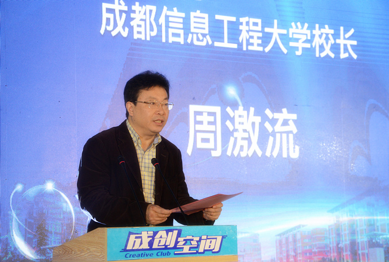 周激流在致辞中回顾了成信大65年的风雨历程,强调了创新在学校发展中的推动作用,肯定了成创空间近年来取得的优异成绩。他表示此次大赛的举办不仅能够培育和选拔出参加四川省乃至全国创新创业大赛的优秀企业和团队,同时,也能为成信大广大师生打造良好的创新创业环境和服务平台,从而促进成信大和双流区创新创业工作的快速发展。