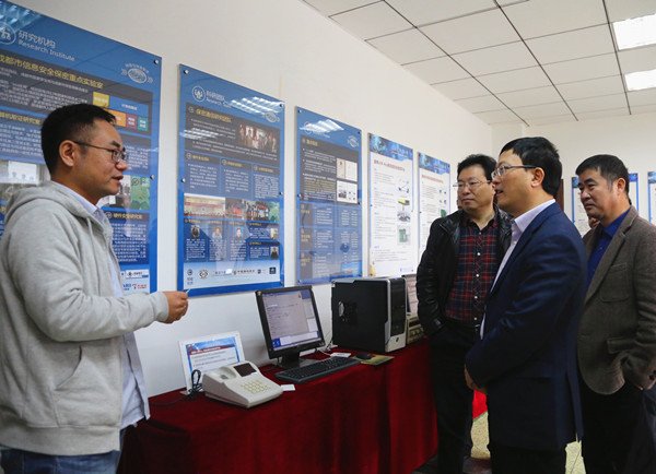 在周激流、贺盛瑜的陪同下,吕信伟一行走访了信息学科群和大气学科群,对学校的教学科研、学生创新等方面情况进行了深入的调研。
