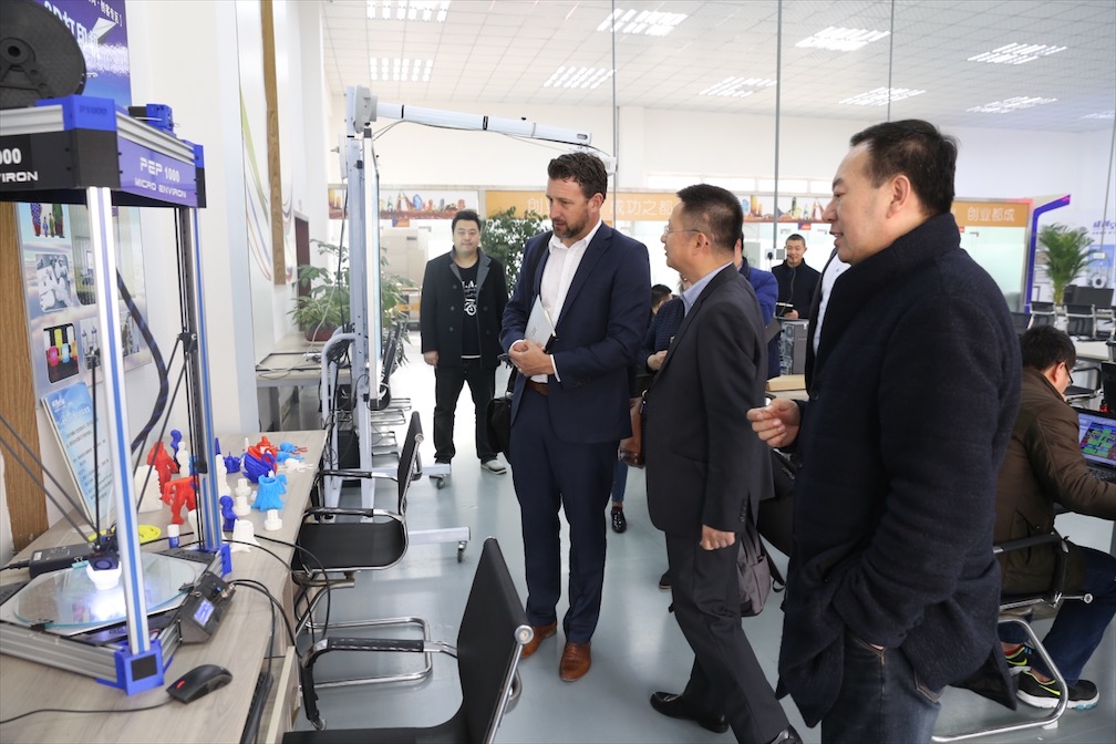 【本网讯】1月5日,新西兰怀卡托理工学院产品与计划部主任Warwick Pitts、创新中心主任Margi Moore、 艺术设计学院院长Sam Cunnane 及中国项目部主任Walley Qiu一行来校交流访问。代表团参观了学校大学生创新创业实验室、大学生创新创业基地、成创空间、成都研究院及学校孵化的通甲优博公司,对我校三级创新创业教育平台体系以及创新创业孵化成果有了系统的认识。