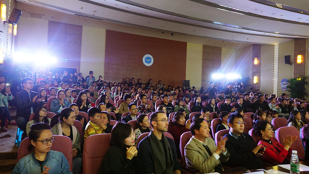 在活动过程中,肖德美邀请师生观众登台参与互动,现场教授川剧的肢体动作和表情表达方式等,让全场师生对川剧有了更加直观的感受。艺术家们生动有趣、别开生面的川剧介绍和精湛的表演让观众大开眼界,尤其是川剧变脸赢得了阵阵掌声。