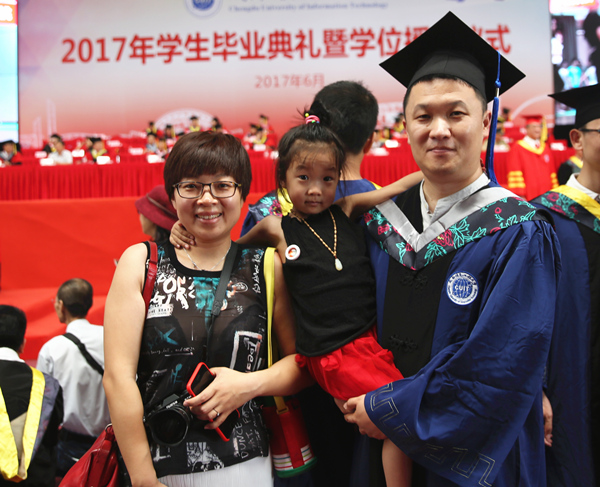 校友代表、四川省气象局党组成员、副局长陈忠明代表成信大毕业的校友向毕业生们完成了人生中重要的一段学业表示祝贺。他表示,自己的成功离不开母校的培养、老师的教诲以及专家的指点和帮助。谈及自己的成长经历,他总结出了“感恩、勤勉、精进、包容、协作”10个字与大家分享,并向毕业生们提出希望:“国家因为有你而强大,社会因为有你而进步,单位因为有你而发展,成信大因为有你而骄傲!”